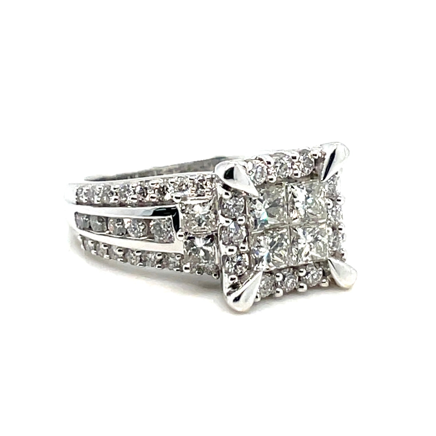 14k White Gold Engagement 3.10 CT TW Diamonds Ring