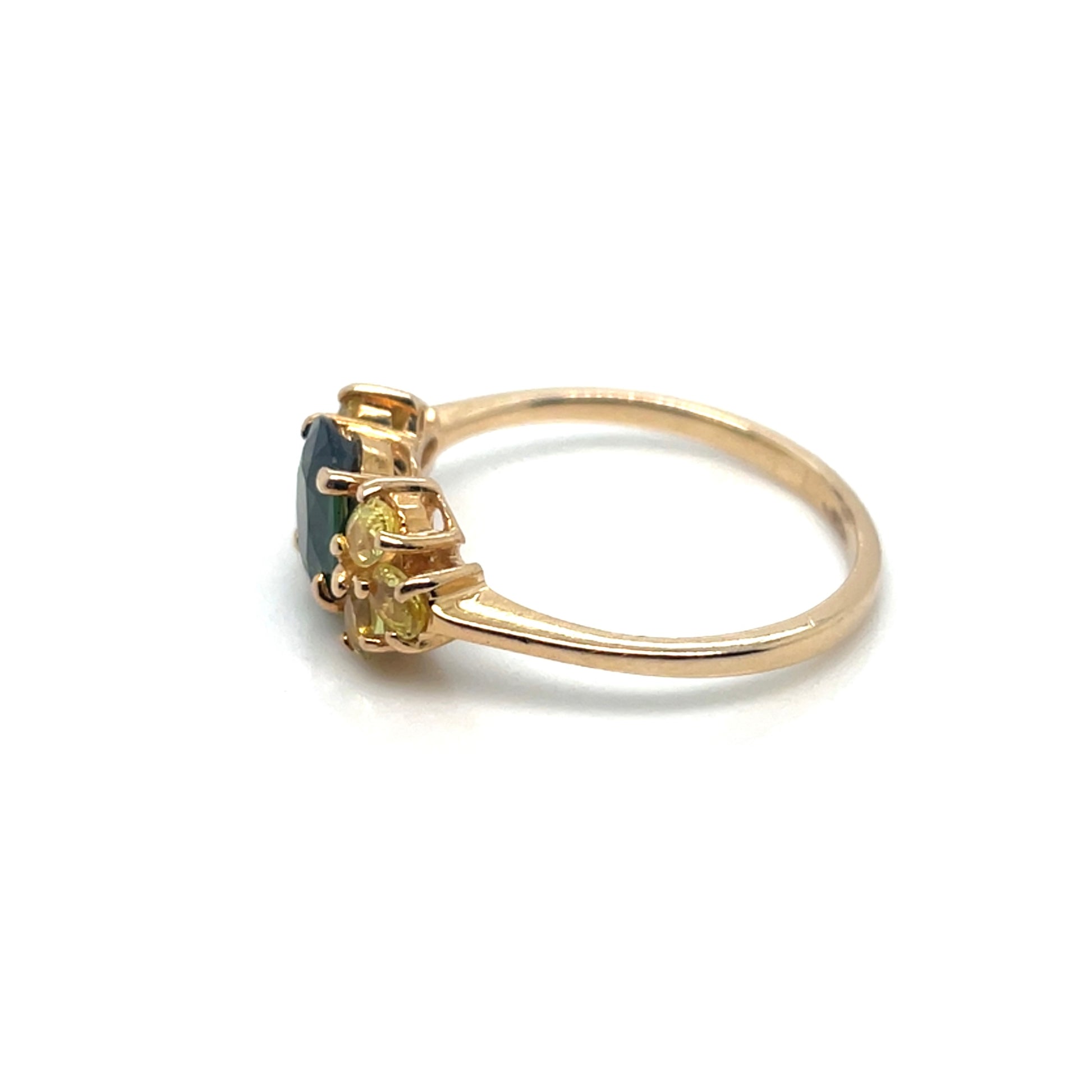 14k Yellow Gold Green Tourmaline and Lemon Quartz Ring