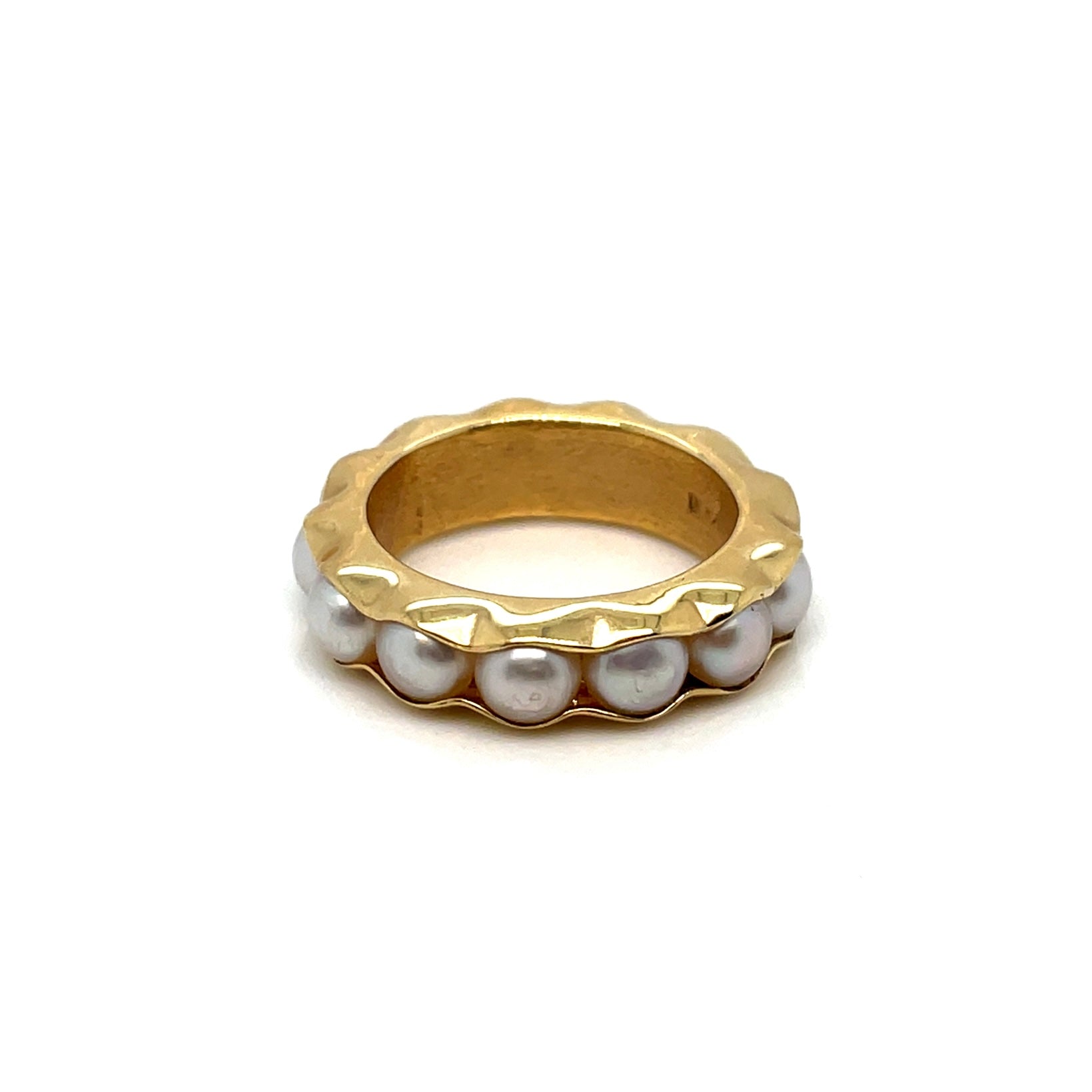 Designer scalloped infinity Lady’s Pearl Ring, South Sea Genuine Pearls White Color with Pinkish luster;