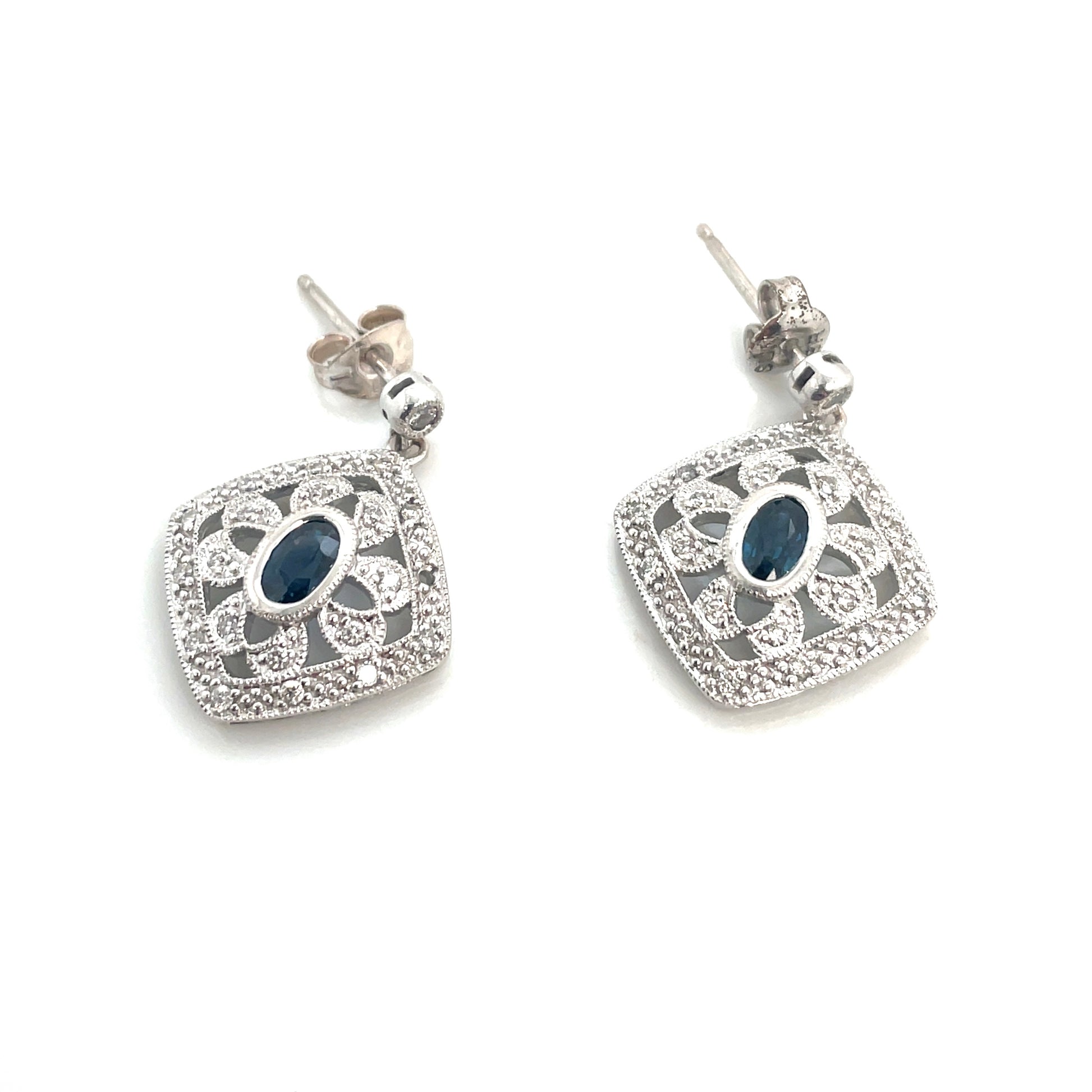 18k White Gold Sapphire Diamonds Earrings