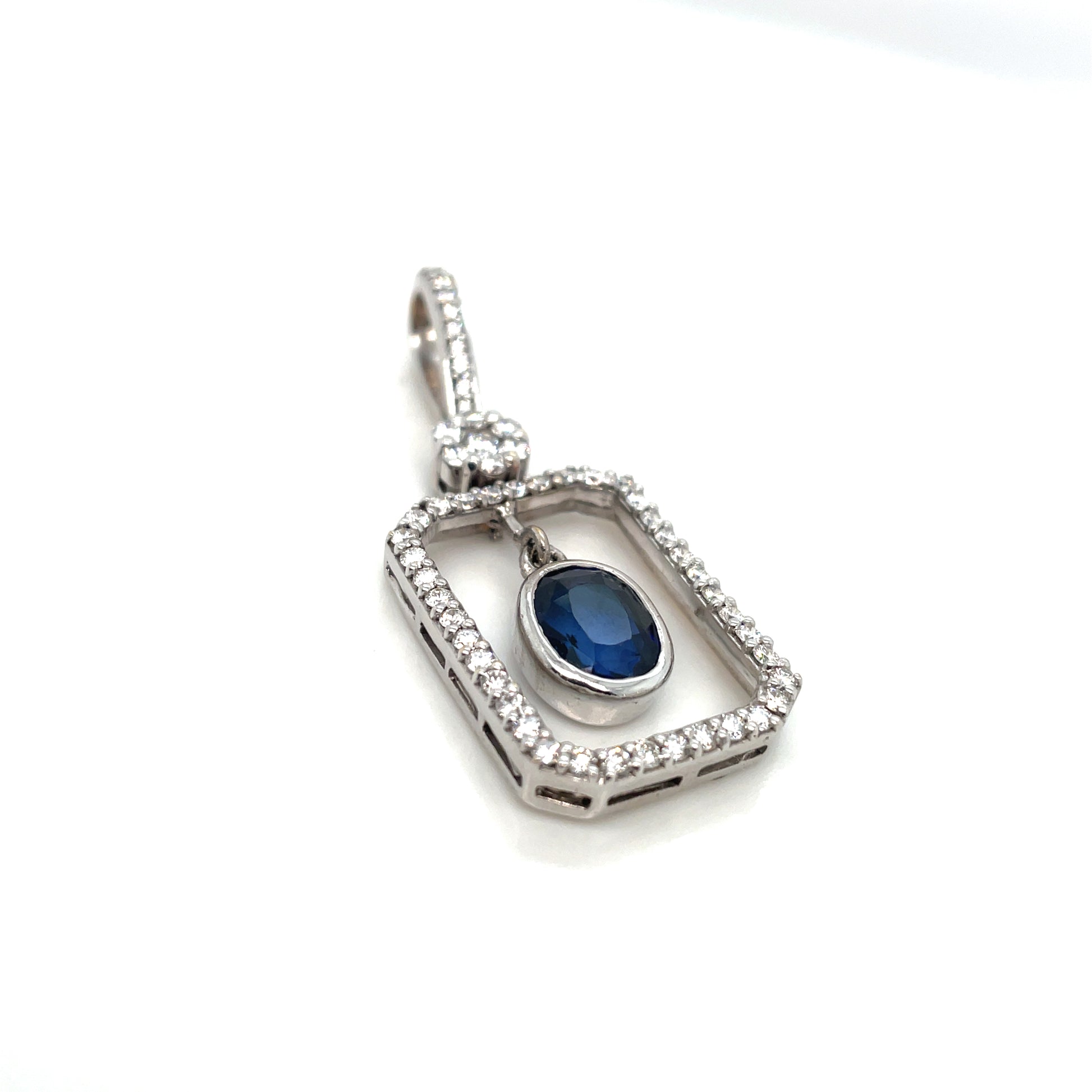 21k Rhodium Plated Sapphire and Diamonds 1.10 CT TW Pendant