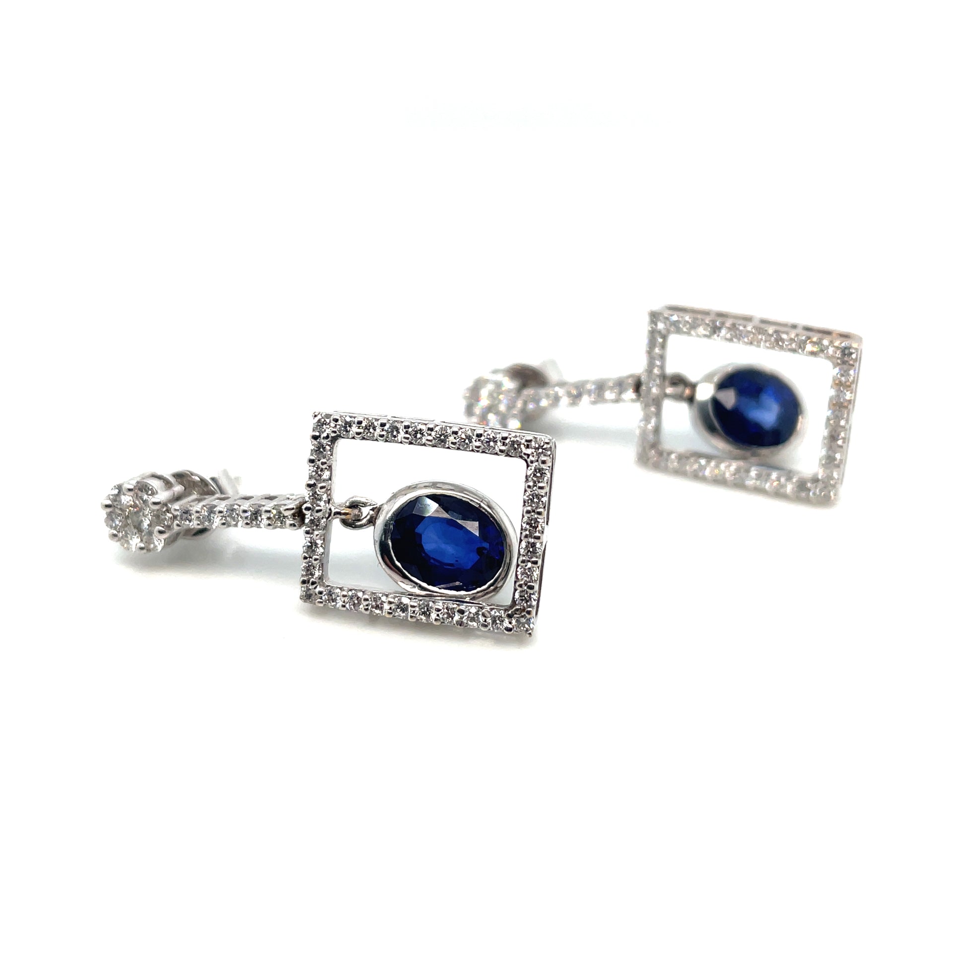 21k Rhodium Plated Sapphire and 2.3 CT TW Diamonds Earrings