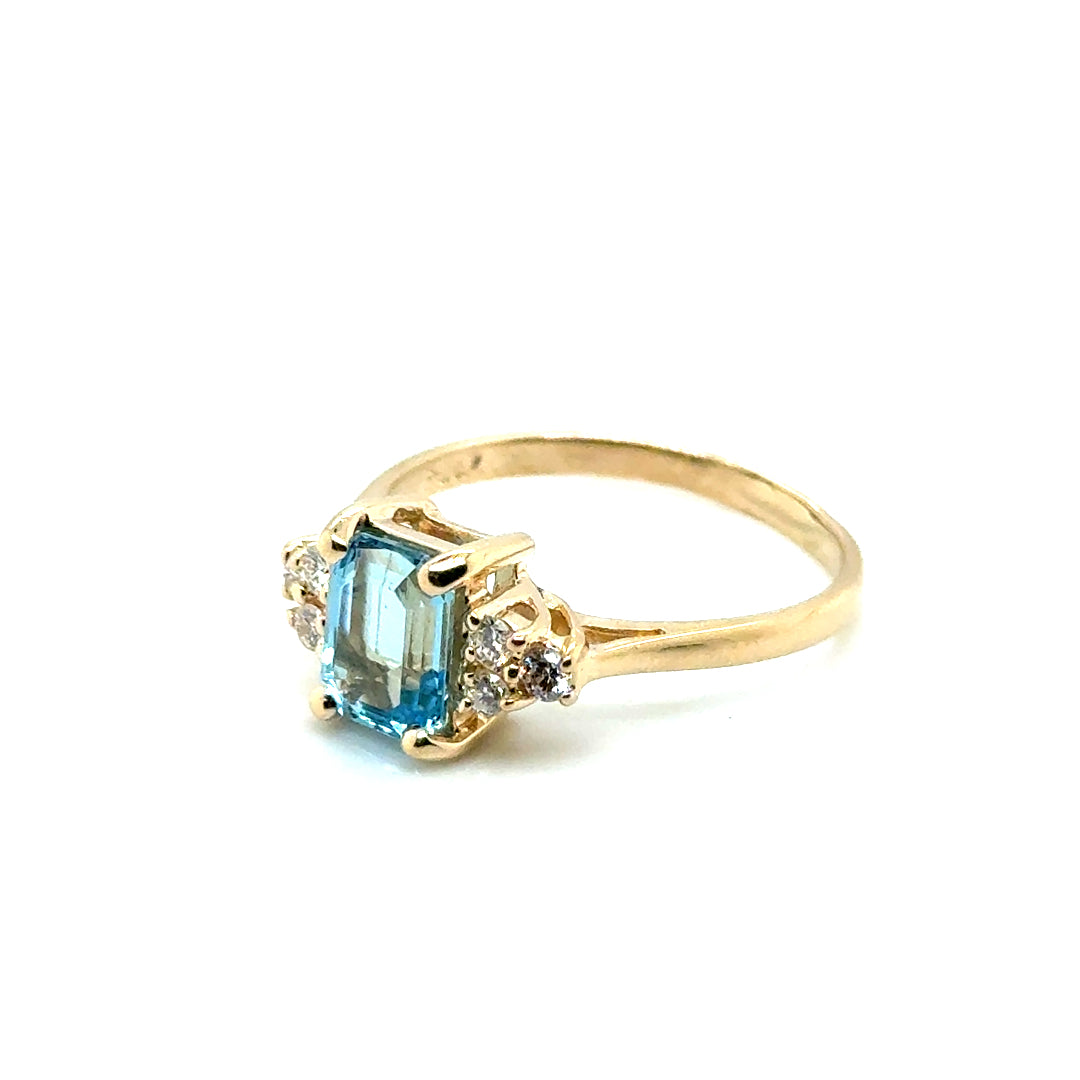 New 14k Yellow Gold Topaz & Diamond Ring